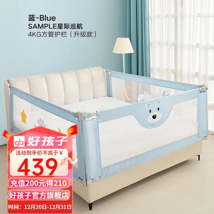 A、好孩子(gb)床圍欄嬰兒童床擋板寶寶床上防摔床邊護欄升降床護防夾防護欄 【星際巡航】升級款-藍色三片裝 1.8米床型(1.8*2.0*2.0米)