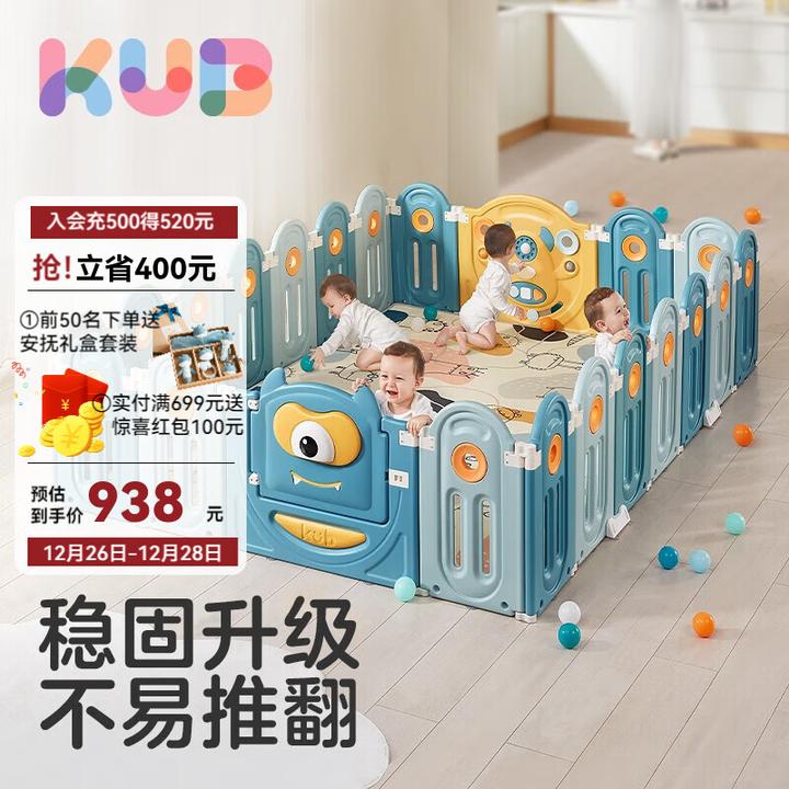 B、可優(yōu)比(KUB)【可折疊收納】寶寶游戲圍欄防護欄嬰兒兒童地上家用室內(nèi)護欄 圍欄【16+2】+2CM厚爬行墊