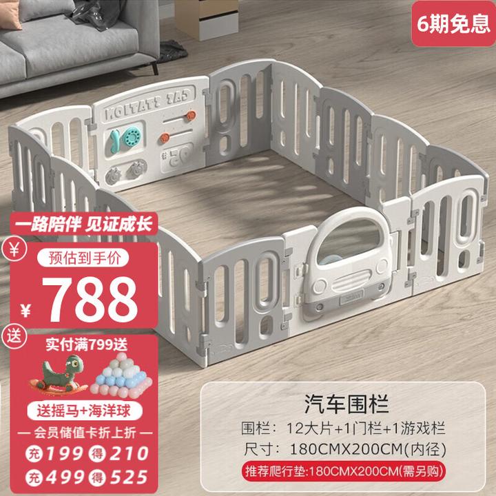 D、曼龍兒童游戲圍欄爬爬墊嬰兒室內(nèi)寶寶學步爬行墊地上防護欄家用爬行墊 汽車圍欄12+2+海洋球