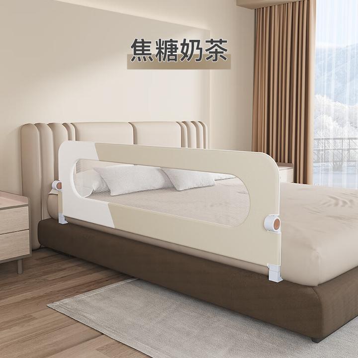 F、babycare旗下兒童防摔防護欄免組裝便攜式可折疊旅行床護欄圍欄床上擋板嬰 焦糖奶茶-旗艦款【大U型固定腳】 2.0米(隱形折疊床圍)