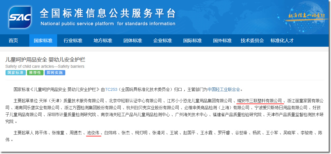 近日,國(guó)家市場(chǎng)監(jiān)督管理總局、國(guó)家標(biāo)準(zhǔn)化管理委員會(huì)發(fā)布中華人民共和國(guó)國(guó)家標(biāo)準(zhǔn)公告(2025年第24號(hào)),由瑞安市三聯(lián)塑料有限公司作為主要起草單位、公司產(chǎn)品經(jīng)理池俊偉擔(dān)任起草人的國(guó)家標(biāo)準(zhǔn)《兒童呵護(hù)用品安全 嬰幼兒安全護(hù)欄》(GB/T 46508-2025)正式獲批發(fā)布,并將于 2026年11月1日起全面實(shí)施。這一標(biāo)準(zhǔn)的出臺(tái),不僅填補(bǔ)了當(dāng)前嬰幼兒圍欄類目缺乏統(tǒng)一國(guó)家標(biāo)準(zhǔn)的行業(yè)空白,更為我國(guó)嬰幼兒用品安全領(lǐng)域樹立了全新質(zhì)量標(biāo)桿,同時(shí)也是公司在標(biāo)準(zhǔn)化建設(shè)與高質(zhì)量發(fā)展道路上取得的又一重要成果,標(biāo)志著公司在以標(biāo)準(zhǔn)引領(lǐng)產(chǎn)品升級(jí)、以質(zhì)量賦能產(chǎn)業(yè)轉(zhuǎn)型的進(jìn)程中邁出了關(guān)鍵一步。?